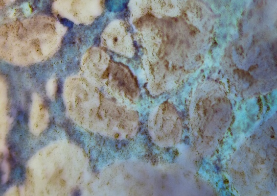 I have taken microscopic photographs of bones to see their minute details. The further I go into the micro world, the more I start to see the scattered fragile images having rough grains. This is also an act of looking for a connection to a macro world simultaneously. I have then reversed images to create colour negatives combining these images with lightboxes allowing me to explore the close relationship between bones and cosmos, beyond the visible.