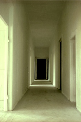 “In 1996 during a group residency at The Artist’s Museum in Lodz, Poland, Aoyagi worked within a derelict building. For ‘White Corridor’ she renovated and painted a long narrow corridor to bring it’s form into focus. Shafts of daylight reached through open doors to suffuse the pure white space with the reflected green of the trees outside. ‘Human Voice’, a computer generated soundtrack made in collaboration with John Thorne, added a further sensory dimension to the newly sensitised place.